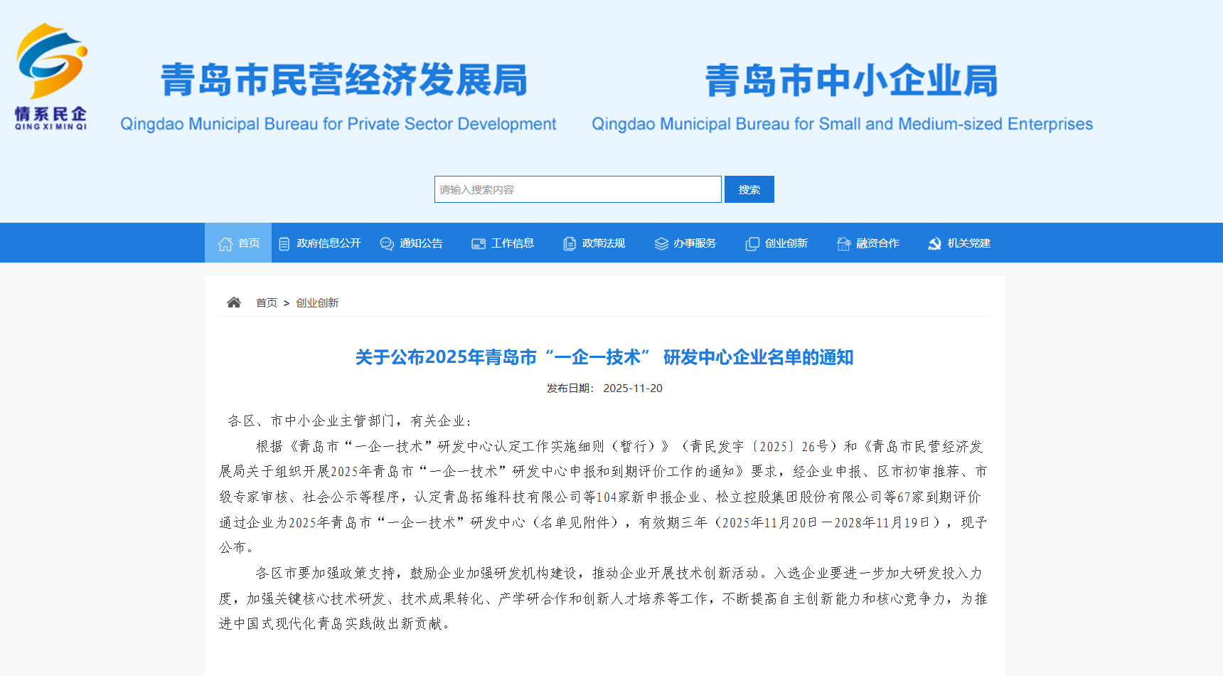 海美特始终坚持以科技创新驱动企业发展,先后荣获国家级高新技术企业、国家知识产权优势企业、国家专精特新“小巨人”等多项国家级荣誉,并成功通过青岛市专精特新示范企业、山东省专精特新中小企业、青岛市企业技术中心及科技型中小企业等省市级资质认定。此次再度获评青岛市“一企一技术”研发中心,不仅是对企业技术积累与创新能力的持续肯定,也进一步印证了海美特“专注一技、精益求精”的发展路径。