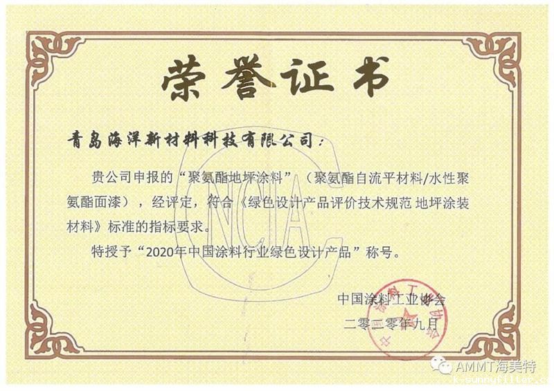 YO米直播NBA最新消息深耕聚脲聚氨酯行业多年,一直致力于研发生产全体系的绿色环保的产品。公司“聚氨酯地坪涂料”产品可以在此次评价中顺利通过2020年中国涂料行业绿色产品的评价,是公司获得政府支持与消费者信任,顺利开展绿色营销的重要保证。