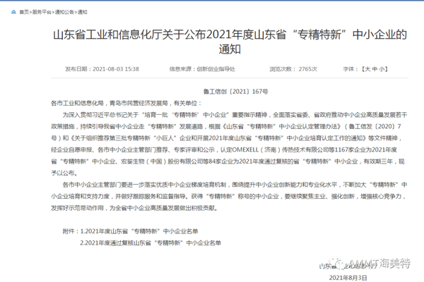 2021年8月,YO米直播NBA最新消息(AMMT海美特)获批2021年度山东省“专精特新”中小企业荣誉称号!