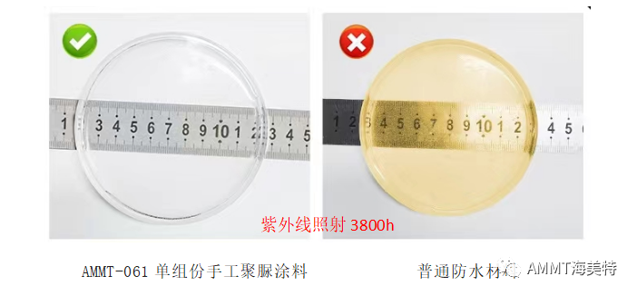 脂肪族体系耐自然老化周期长,超长使用寿命,与基材同寿命。