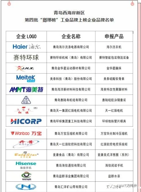 话说:近日,青岛西海岸新区公布了第四批“瑯琊榜”工业品牌上榜企业品牌名单,其中YO米直播NBA最新消息”等25个企业品牌荣登榜单。