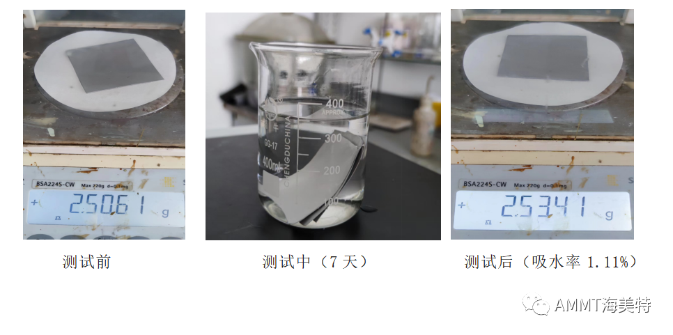 4.材料的疏水性强,吸水率低,不易水解;