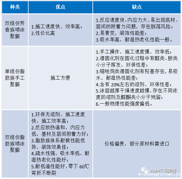三类聚脲材料优缺点对比表