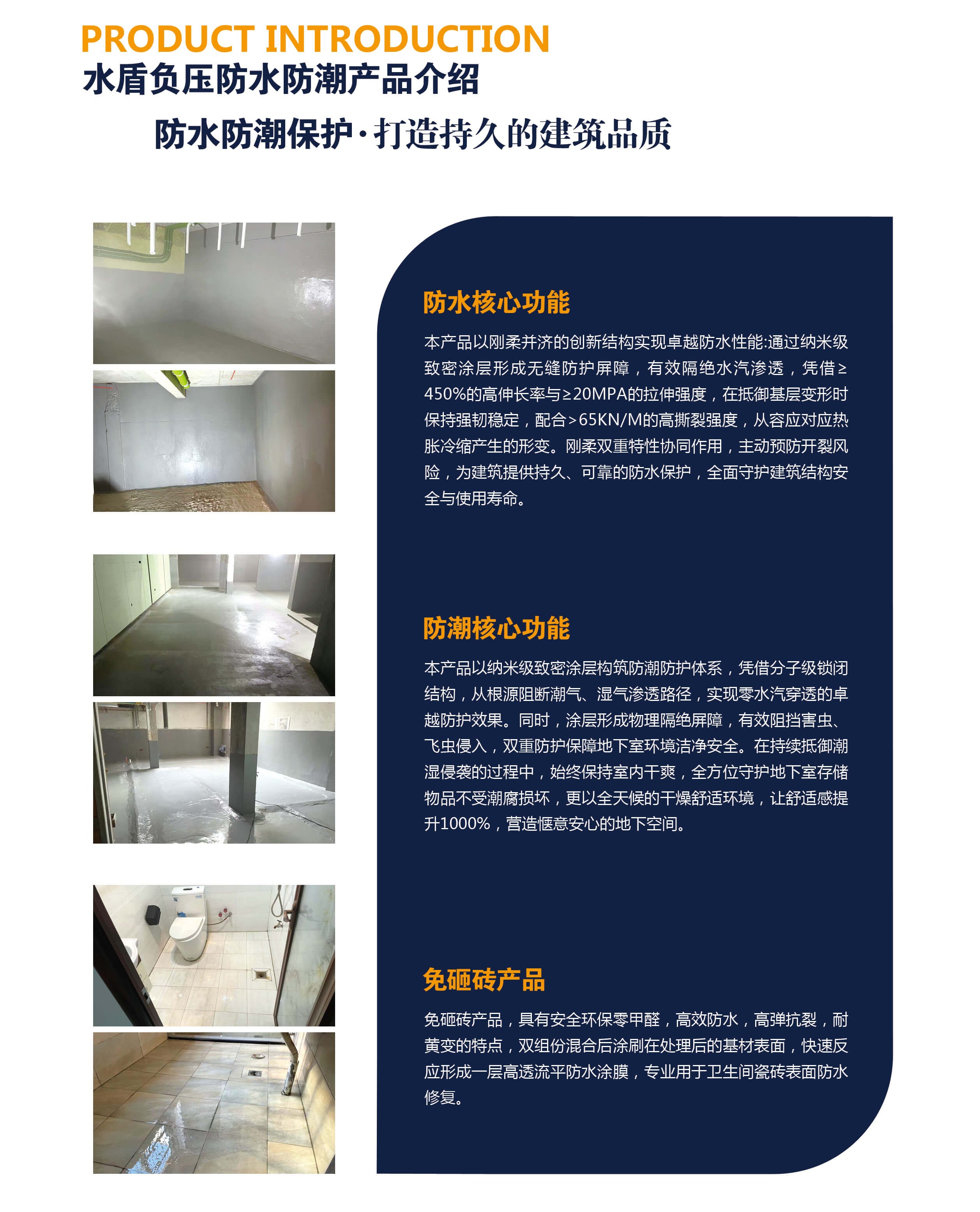 水盾地下室负压防水防潮施工体系专为高端别墅地下室设汁,精准解决负压环境下的渗漏、湿难题。为高端住宅地下空间构建可靠的防水防潮屏障,以卓越品质守护地下空间干爽舒适。